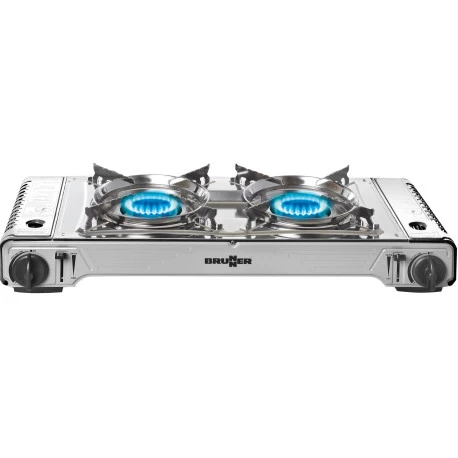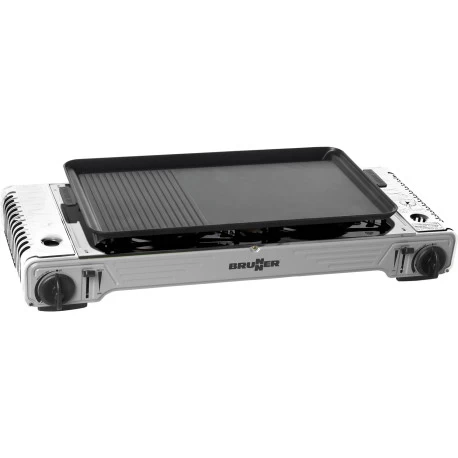 Fornello gas a cartuccia a 2 fuochi con piastra grill.