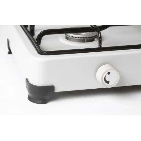 Fornello gas a 3 fuochi stabile e compatto, dotato di coperchio.