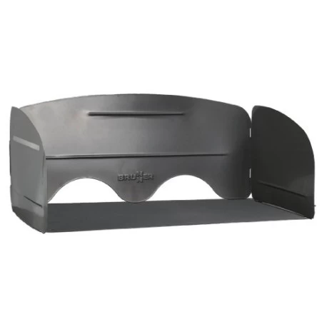 Paravento per piano cottura con base resistente al calore. Tutti gli elementi sono pieghevoli e realizzati in metallo verniciato a polveri.