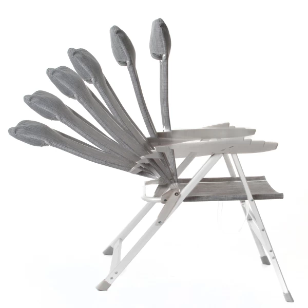 Sedia pieghevole con schienale reclinabile in 6 posizioni.
