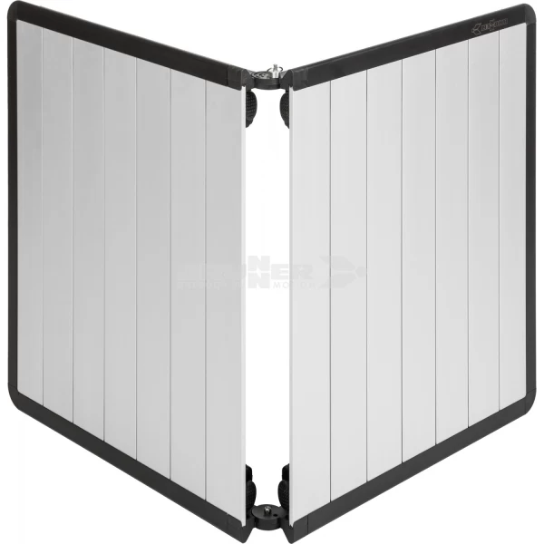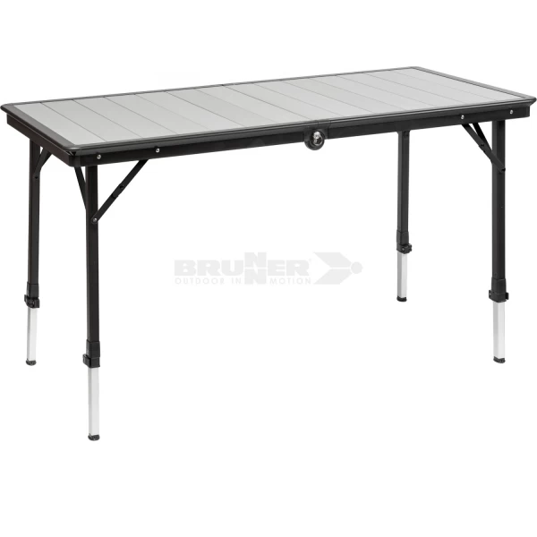 Tavolo leggero con piano in listelle di alluminio, richiudibile a valigetta