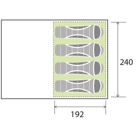 La tenda unisce su un’unica sperficie una piacevole altezza uomo ed ampi spazi ben distribuiti tra la zona giorno e la zona notte.